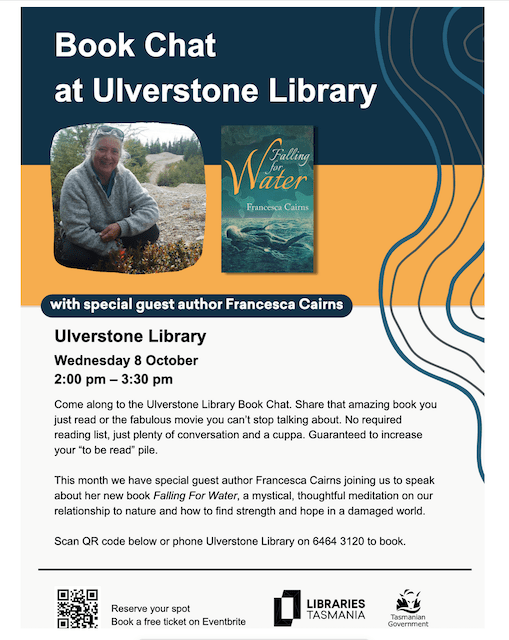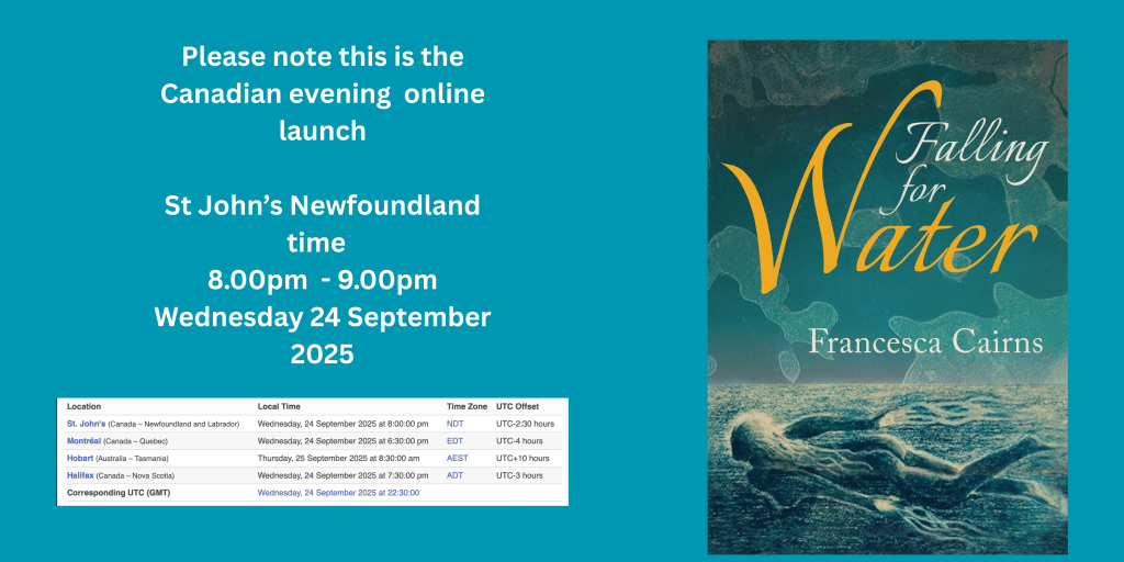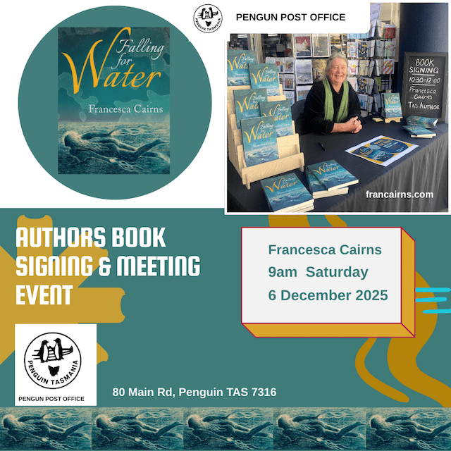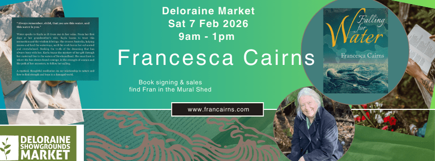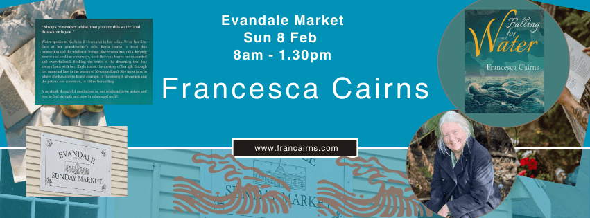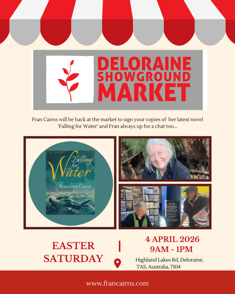 Excited to be the featured author at the Wilmot Country Market Saturday 6 December 3pm -7pm Come and have a chat about my new novel Falling for Water – signed copies will be available for special market price of $25.